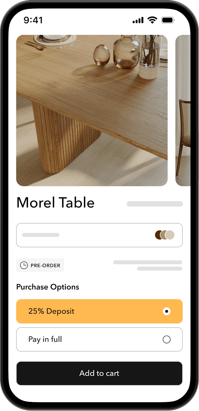 For high-value items with longer lead times, shoppers naturally want reassurance before they commit. Requiring upfront payment means many customers hesitate and abandon their carts.