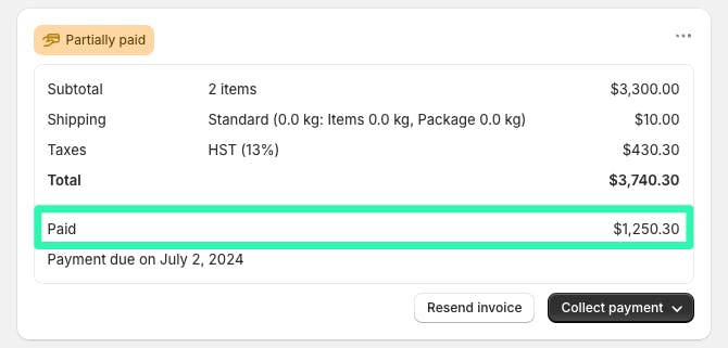 Partially paid is the order payment status you'll see when your orders had a $ or % deposit set in Downpay and processed at checkout.