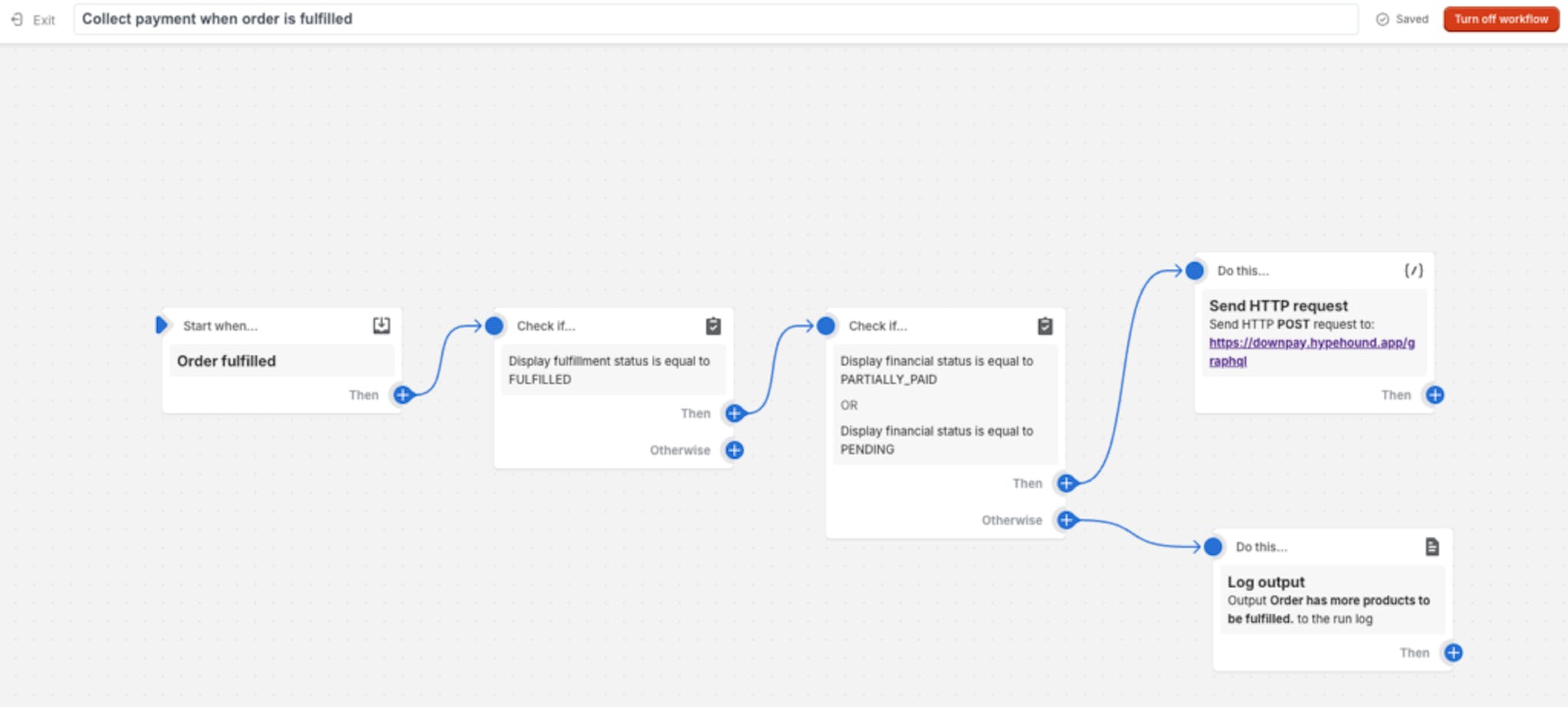 With our recent public release of the Downpay API and tools like Shopify Flow becoming available on all Shopify plans, building flexible payment collection workflows is easier than ever. Over the next few months, we will be exploring many of the sought after Shopify payment automation workflows our merchants have asked for.